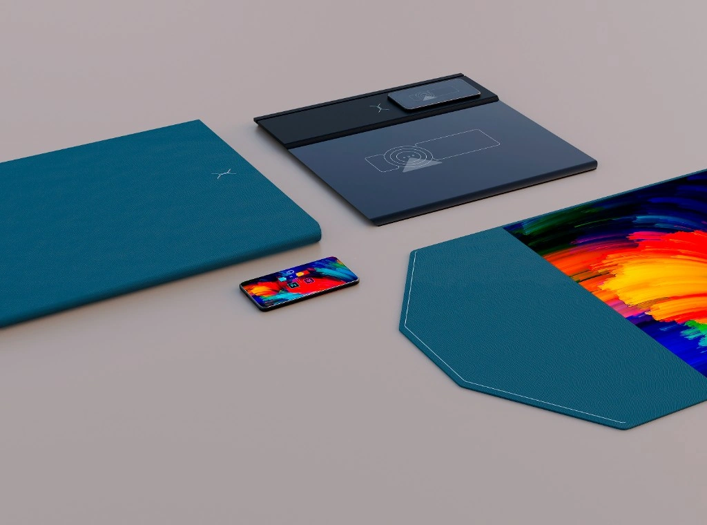Bachelorthesis: Ein Konzept für die Zukunft des mobilen Arbeitens. XTEND verbindet faltbare Displaytechnologie, Sichtschutz und autarke Energieversorgung in einem ultraflachen, tragbaren System.